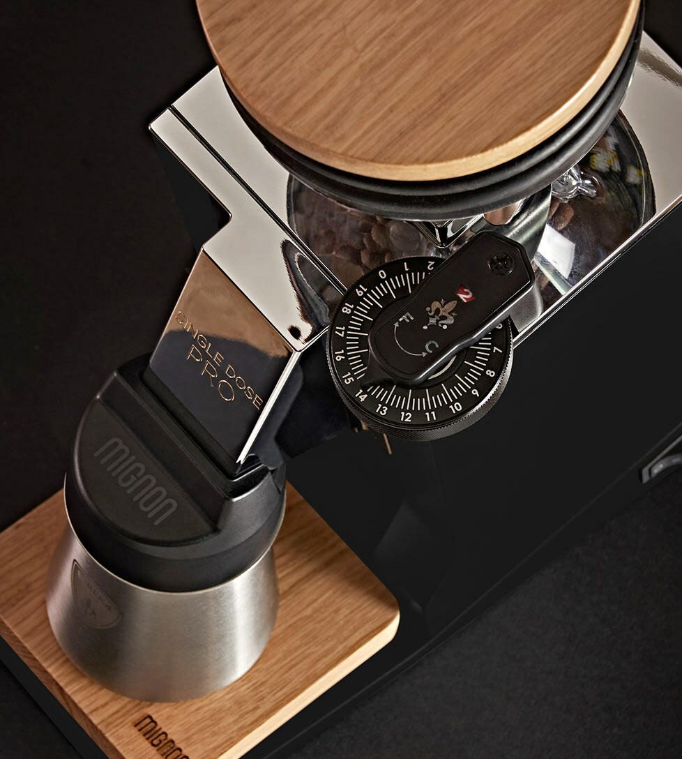 Bohnenbehlter | Single-Dose Hopper (45g) mit Blow Up System und Eichenholzdeckel |