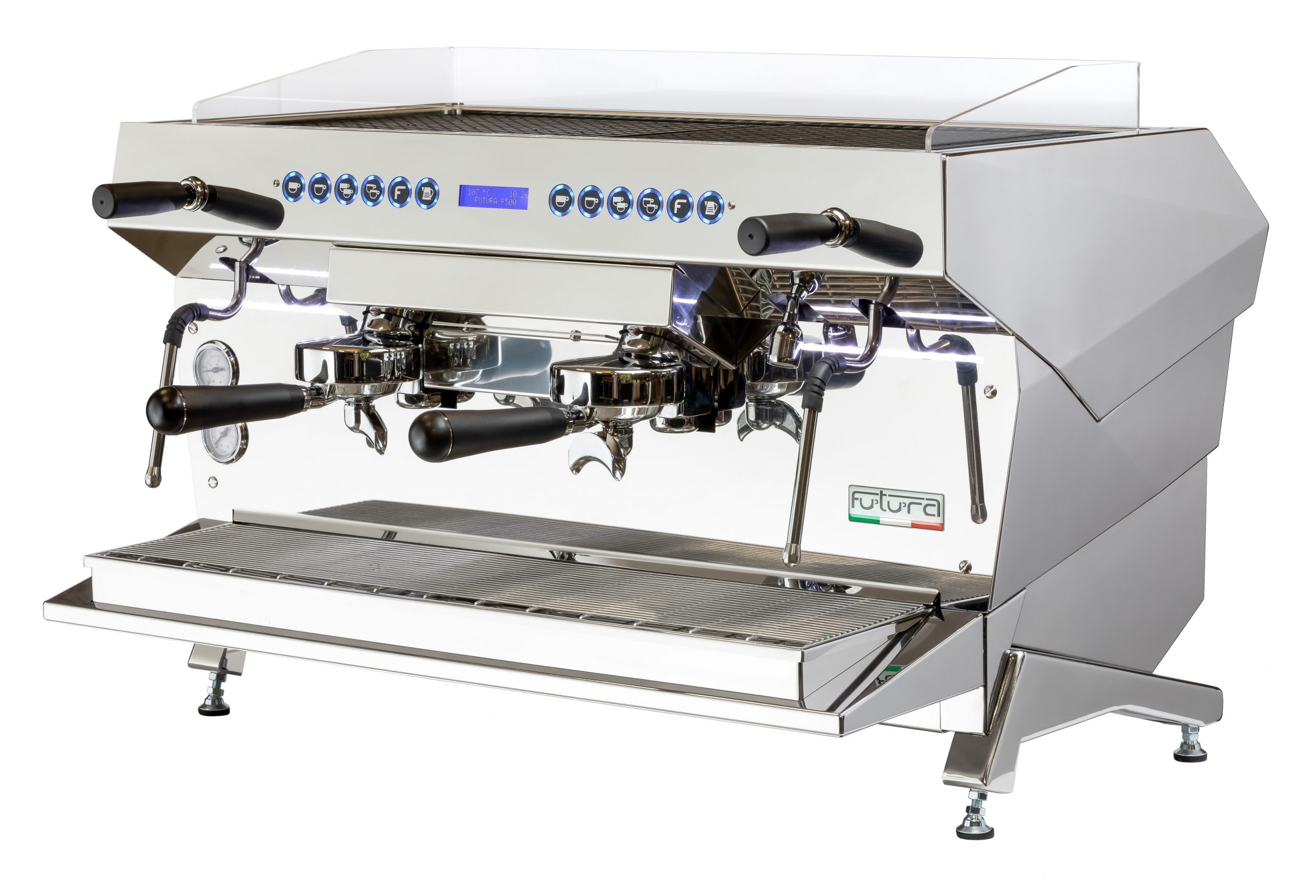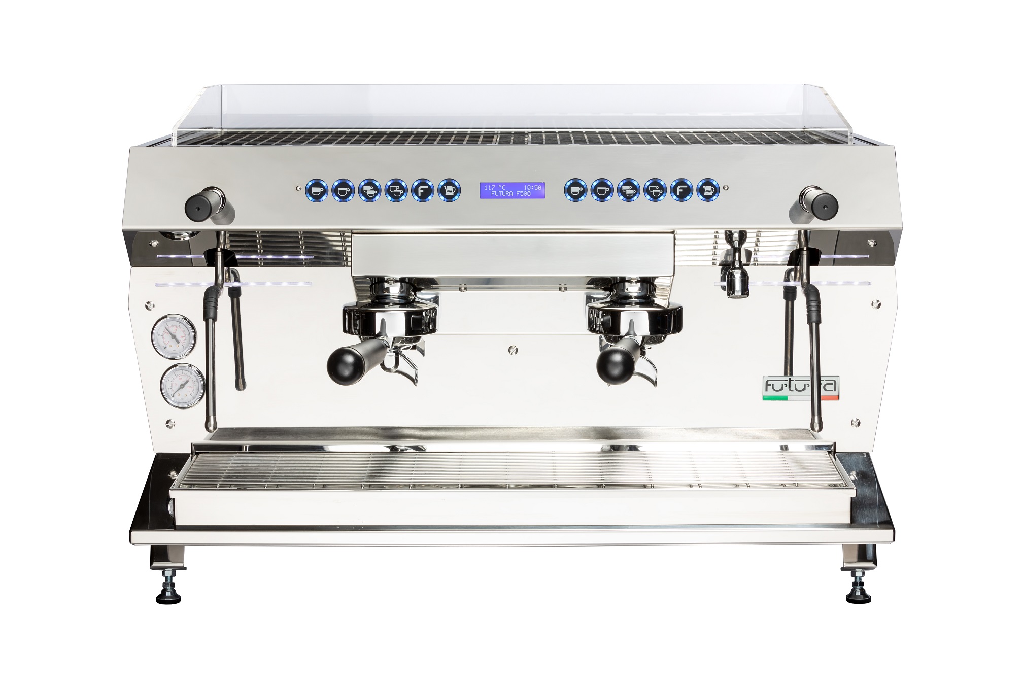Die FUTURA F500 Modelle sind professionelle Kaffeemaschinen mit 2 oder 3 Brühgruppen vom Typ E61. Die FUTURA F500 ist eine futuristische, solide und zuverlässige Maschine im neuen eleganten Design und mit mit hochwertiger Ausstattung. Serienmäßig sind alle F500 Modelle mit einem Multifunktionsdisplay ausgestattet. Die F500 ist extrem zuverlässig und beständig und ihre kontinuierliche Leistung bietet immer das beste Ergebnis. Durch den grossen Kupferboiler und die extra grossen Wärmetauscher ist diese Maschine bestens geeignet für Restaurants, Eiscafés, Hotels und alles Gastronomien mit grossem Kaffeebedarf.