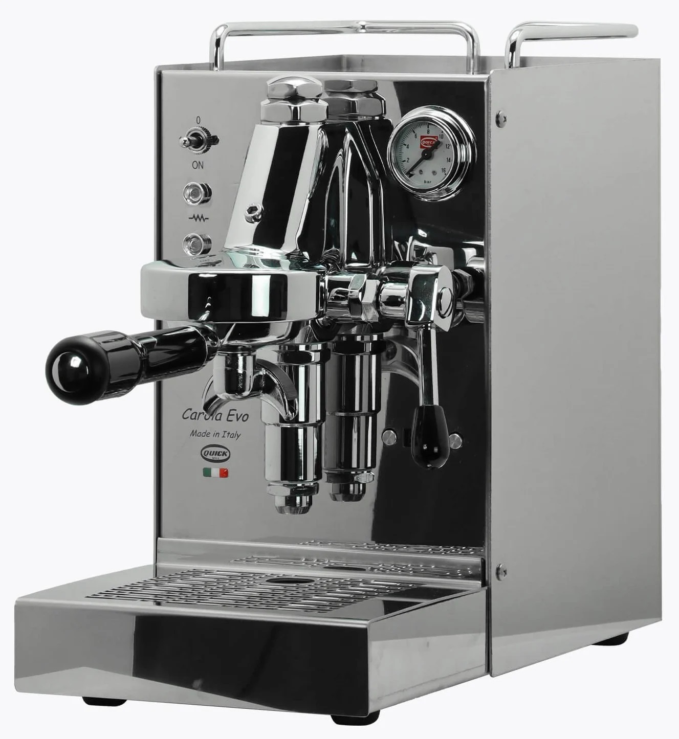 Die QuickMill Carola Modell 0960 ist eine Espressomaschine für die Puristen unter den Espressoliebhabern. Ausgestattet mit der bewährten Faema E61 Brühgruppe und einem Kessel ,nur für die Kaffee Zubereitung. Die QuickMill Carola ist dank einer manuellen PID Steuerung sehr Temperatur- und Druckstabil. Der relativ kleine Kessel hat eine geringe Aufheizzeit für eine rasche Zubereitung. Dies ermöglicht ein sehr kompaktes Gehäuse. Die QuickMill Carola ist in den Farben Rot, Schwarz oder Edelstahl lieferbar. Als Ergänzung gibt es auch ein reines Dampf Modell 0962, welche mit einem Thermoblock ausgestattet ist.