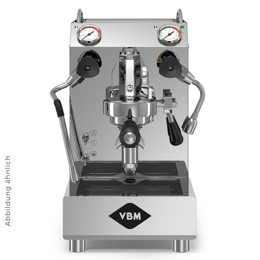 VBM Domobar Junior 2B – Dualboiler Espressomaschine mit VBM E-61 Brühgruppe, 0,6 Liter Kessel mit 0,6 kW Heizung für Kaffee, 0,75 Liter Kessel mit 1,2 kW Heizung für Dampf, regelbarer Thermostat mit minimaler Temperaturschwankung dank Sonde im Kaffeekessel, Siebträger für 1 und 2 Tassen und Blindsieb, Vibrationspumpentechnik, Sicherheitsabschaltung.